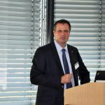 Zunächst gab Herr Veit Salzmann, Geschäftsführer der Hessischen Landesbahn, einen Überblick über die aktuellen Entwicklungen im SPNV-Markt. Dieser ist nach seinen Erfahrungen geprägt durch immer weniger Marktteilnehmer und immer größere Herausforderungen bei der Fahrzeugfinanzierung. Um den Markt zu erhalten, sind nach seiner Einschätzung flexible, auf die jeweilige Situation angepasste Vergabe- und Vertragsformen sowie der weitere Abbau von Markthemmnissen insbesondere bei Vertrieb und Infrastruktur notwendig.